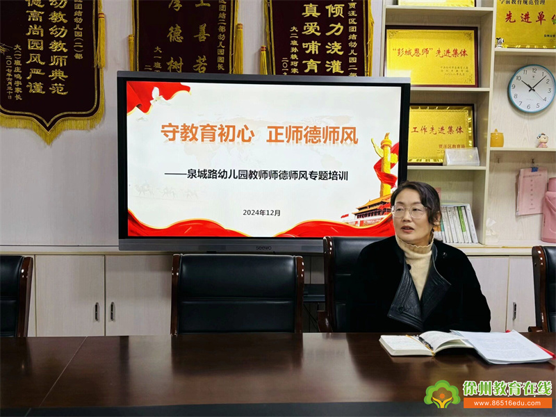 为认真贯彻落实《幼儿园教师职业道德规范》、《教师职业道德行为准则》的规定,更好地履行教师职业道德,塑造良好的教师形象,做一名受幼儿尊敬、让家长满意、赢得社会好评的人民教师,2024年12月24日,泉城路幼儿园组织全体教师开展了师德师风专题学习活动。
