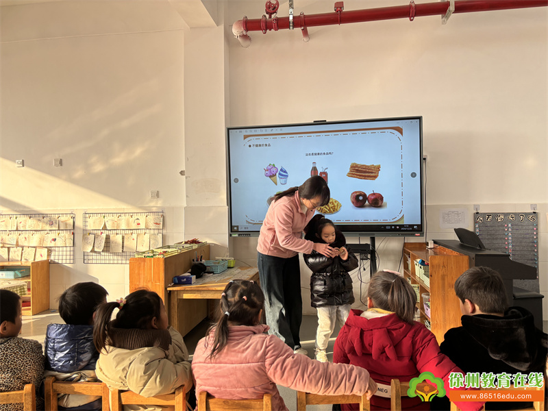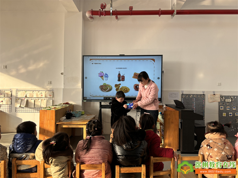 课堂上,老师们充分结合幼儿的年龄特点,通过播放有趣的动画视频、展示色彩鲜艳的图片等形式,生动形象地向孩子们介绍了各类常见食物。哪些是健康的绿色食品,像新鲜的苹果、青菜;哪些是经过加工多含添加剂的不健康食品,如薯片、辣条等,孩子们看得聚精会神,听得津津有味。