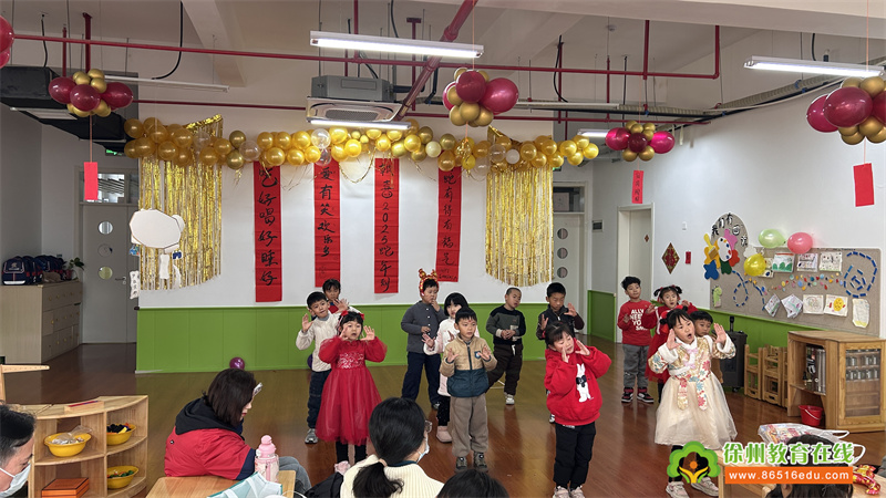 萌娃舞台秀,点亮新年光。五彩斑斓的气球与绚丽的彩带随风舞动。孩子们画上俏皮可爱的妆容,怀揣着小小的紧张与大大的兴奋,等待大展身手。率先登场的是小班的小朋友,他们带来了舞蹈《新年快乐谣》,奶声奶气的声音,虽然偶尔还会念错词,但那认真又努力的模样,瞬间萌化了在场所有人的心。中班的舞蹈串烧活力四射,孩子们跟着动感的节奏摇摆身体,小手小脚挥舞得有模有样,台下的家长们纷纷举起手机,记录这珍贵瞬间,脸上满是自豪的笑容。大班的孩子们带来了《相亲相爱一家人》、《成语拜新年》、《福气要来到》则演绎了一场童趣版的情景短剧,生动的表演、稚嫩的台词引得阵阵欢笑与掌声,欢乐氛围持续升温。