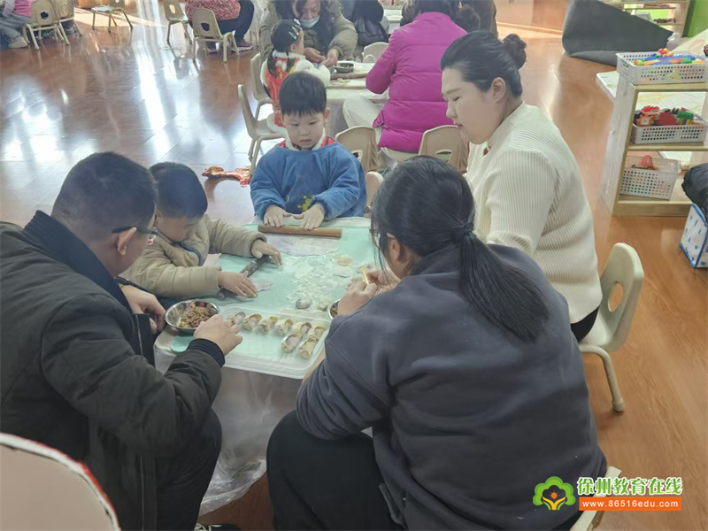 饺香满溢处,亲子暖时光。这边节目精彩纷呈,另一边,家长包饺子活动也热热闹闹地展开了。一张张长桌整齐排列,桌上摆满了新鲜的饺子皮、五彩的馅料。家长们系上围裙,变身厨房高手,手法娴熟地捻起饺子皮,填入馅料,再轻巧地捏出一个个饱满圆润的饺子褶。孩子们也凑到跟前,跃跃欲试,小手在家长的耐心指导下,小心翼翼地学着包。有的饺子破了皮,有的歪七扭八,但每一个都承载着纯真的童心。亲子间的欢声笑语、轻声细语,交织在面粉的淡淡香气里,温馨无比。
