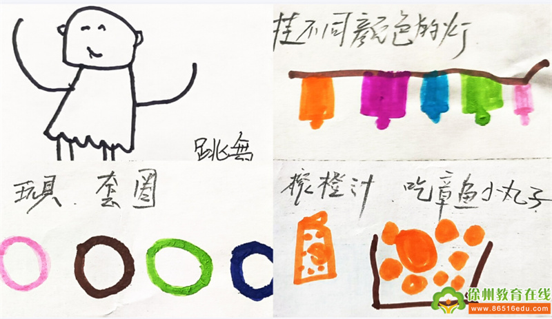 基于幼儿的已有经验和年龄特点,在尊重孩子兴趣的基础上,我们将分别以“‘绘’戏剧”、“‘绘’游戏”、“‘绘’美食”为主题筹备年味大集。