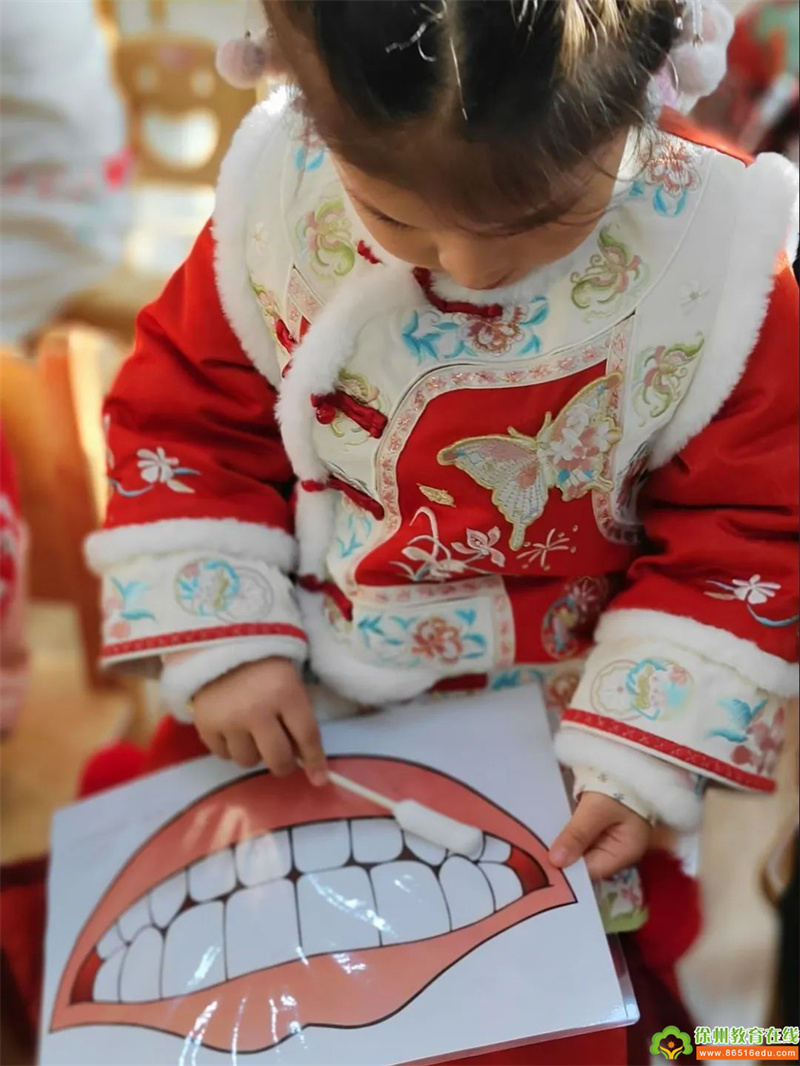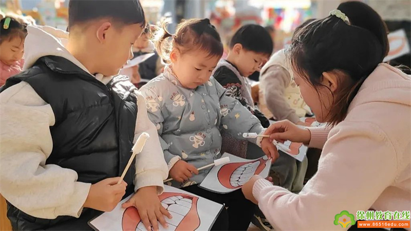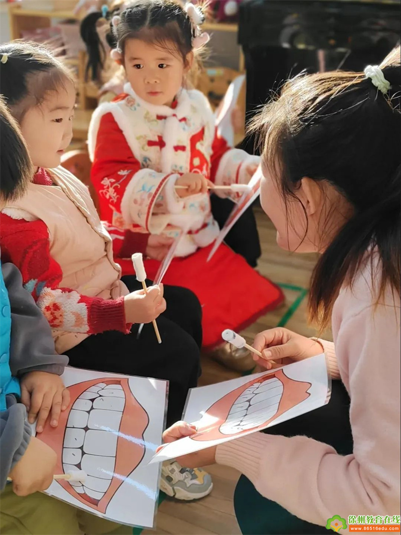 许欣冉的妈妈用活泼生动的语言,寓教于乐,她结合图片与孩子们一起分享这个有趣的故事。她讲述极富感染力,孩子们都被内容深深地吸引,专心致志地聆听。动动小手来刷牙