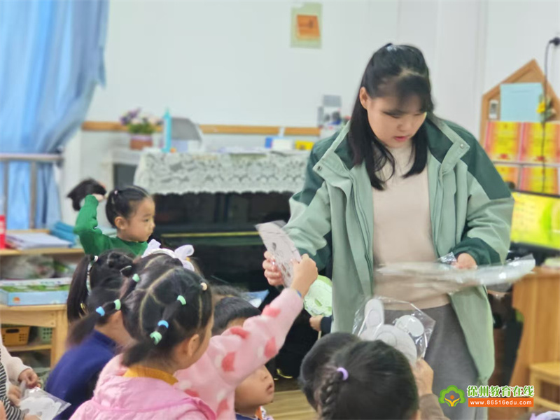 《母鸡萝丝去散步》这个故事看似简单,但充满了戏剧性,将萝丝的一系列散步动态精彩呈现,孩子们在享受故事时不知不觉丰富了词汇量,学到了更多的本领。万允权妈妈准备了可爱的动物面具,奖励给聪明可爱的给孩子们。