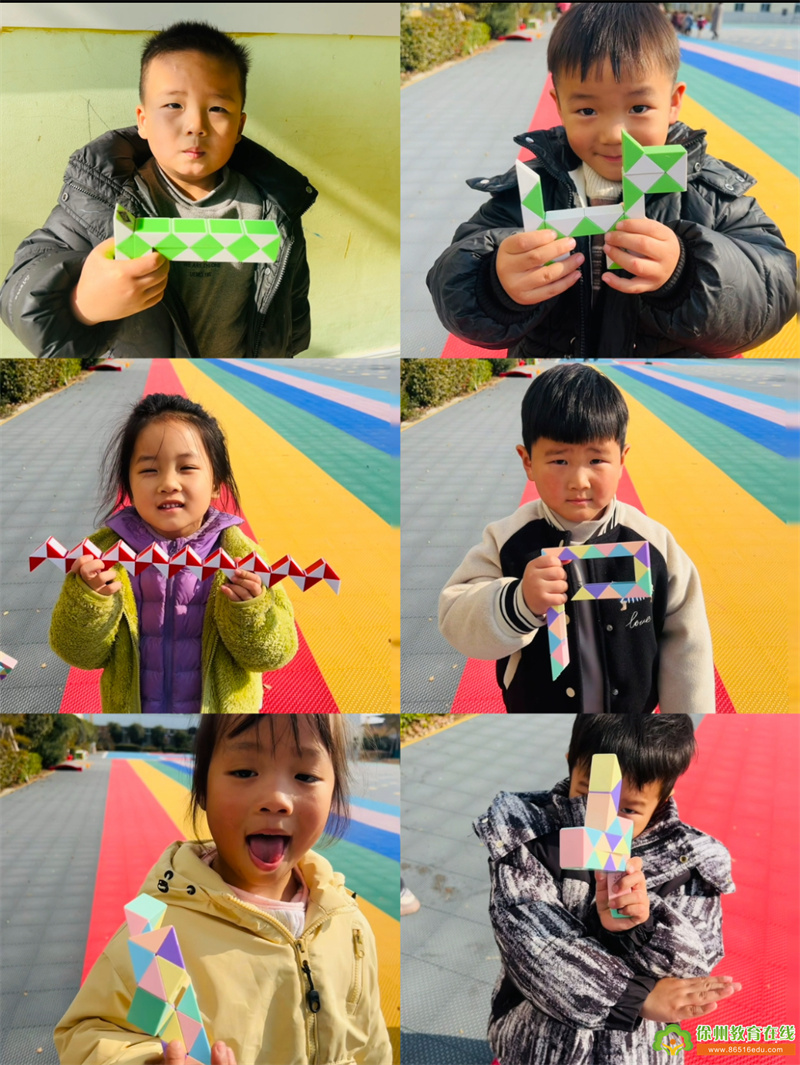 经过学习魔尺后,幼儿可以用魔尺随意扭转变换超级多种不同的造型,各式各样、精彩绝伦。