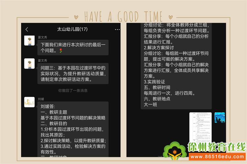 2024年初,太山幼儿园紧跟铜山区阅读组的步伐开启了《幼儿园教研活动50问》的读书之旅。老师们在每一次的读书活动中都积极参与,交流讨论自己对问题的见解。