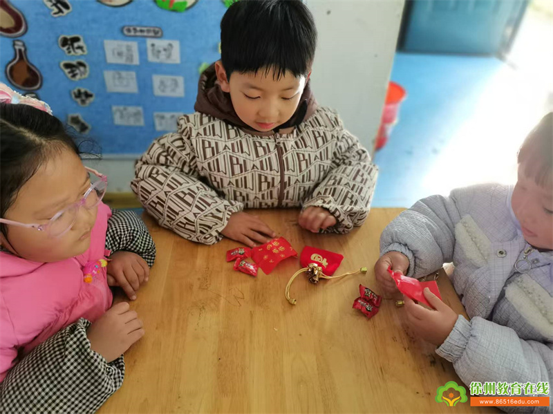 找到福袋后,孩子们回到班级,迫不及待地与同伴分享自己的“寻宝”经历。