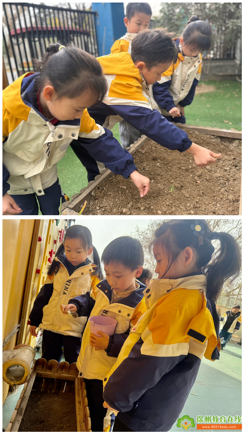 小朋友们小心翼翼地将种子埋进松软的泥土里,轻轻浇水,仿佛在和种子说着悄悄话,期待着这些小种子快快发芽长大。