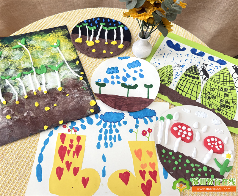 一幅幅作品展示在教室里,就像把春雨的美好永远留在了幼儿园。