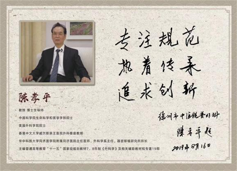 科室多次承办国家级及省市级会议,并承担南京中医药大学等十余所高校教学工作。科室重视人才队伍培养,派遣医师于日本、北京、上海、重庆、天津等国内外知名医院进修学习,打造出了一支规模结构合理、有凝聚力、有战斗力、专业技术精良的现代化普外科医疗团队。我国著名的陈孝平院士给予徐州市中医院普外科寄语:专注规范,执着传承,追求创新。