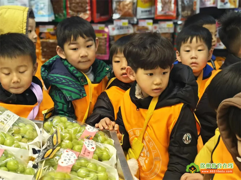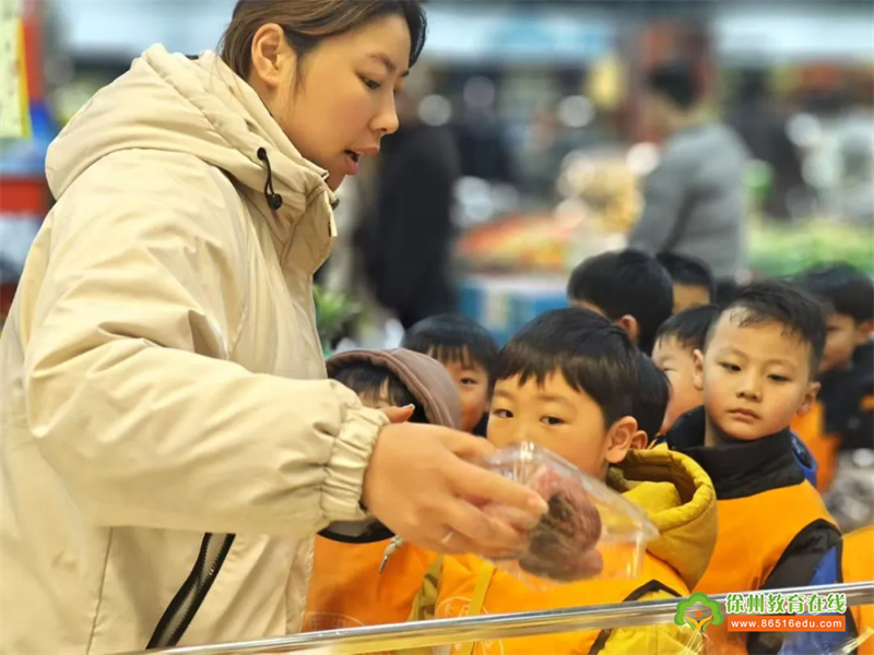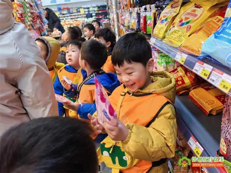 进入超市后,老师带领孩子们参观超市各个区域,并主动向超市工作人员问好。孩子们通过观察发现货架上的标签有不同的数字,在老师的指导下明白了标签上的数字所代表的意义。
