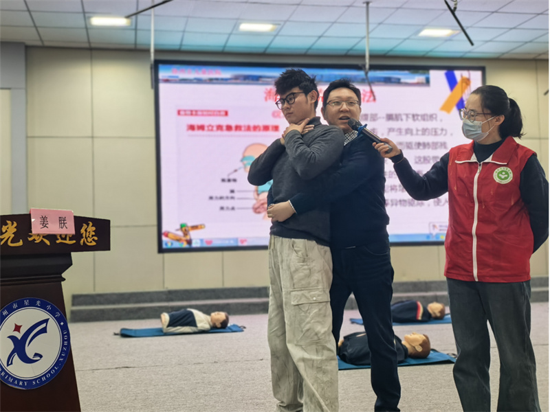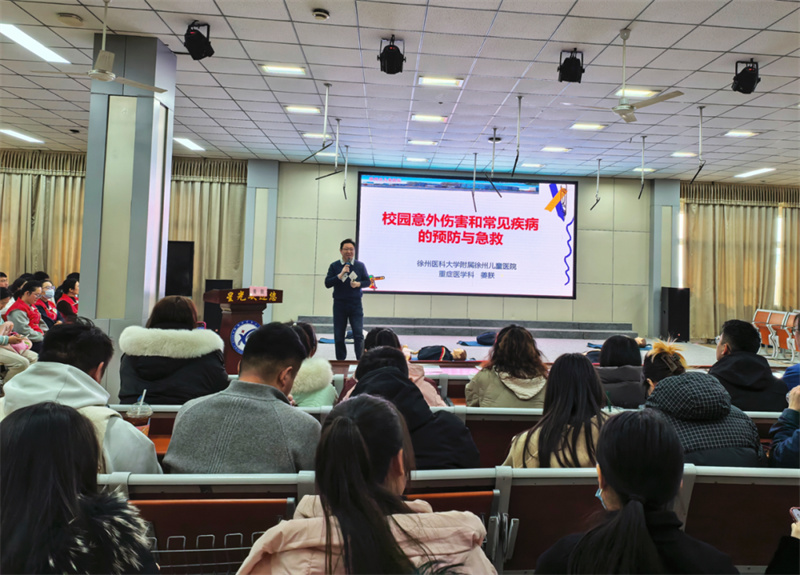 2025年2月27日下午,受泉山区教育局邀请,徐州市儿童医院呼吸内科“送健康,进校园”公益活动项目组在星光小学报告厅为全区中小学、幼儿园的体育卫生教师开展了应急救护专题培训,全区约150名教师参加了此次培训。