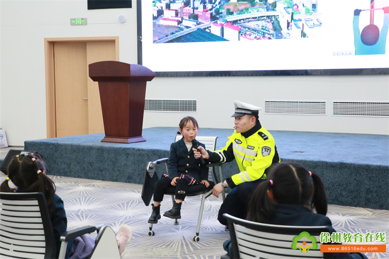 大朋友和小朋友们怀着好奇和期待的心情,聚集在徐州广播电视传媒集团的新闻报告厅。来自徐州交警支队的刘鑫尧警官,身着制服,带着亲切的笑容,通过生动有趣的图片、动画视频和现场演示,耐心地向幼儿介绍限制车辆、禁止鸣笛、注意行人等标志的含义。幼儿听得津津有味,积极回答问题,现场气氛十分活跃。最让幼儿雀跃的当数“安全乘车大闯关”,在交警叔叔设置的模拟下车游戏中,幼儿学习了正确下车的方法,知道了交通规则的重要性。
