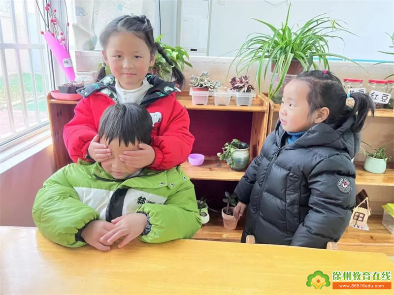 各班的小朋友们通过玩“听声辨位”、“悄悄告诉你”等有趣的声音游戏,感受小耳朵神奇的本领。