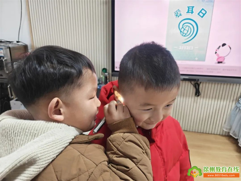 为了让小班、中班的弟弟妹妹了解保护耳朵的重要性,大班哥哥姐姐们化身小小宣传员,利用过渡环节、区域游戏等时间向小朋友们宣传爱耳日。