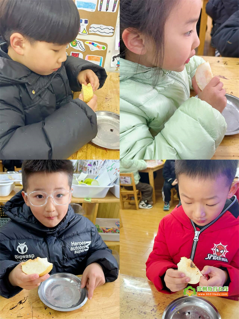 大三班的小朋友们迎来了“品惊蛰”时刻,孩子们围坐在一起,开心地品尝着清甜多汁的梨。“惊蛰吃梨”,寓意着与害虫别离,也有着让身体康健的美好祈愿,孩子们在品尝中感受着传统习俗的独特韵味。品尝过后用剪贴的方式表现,看我们的小手巧不巧?
