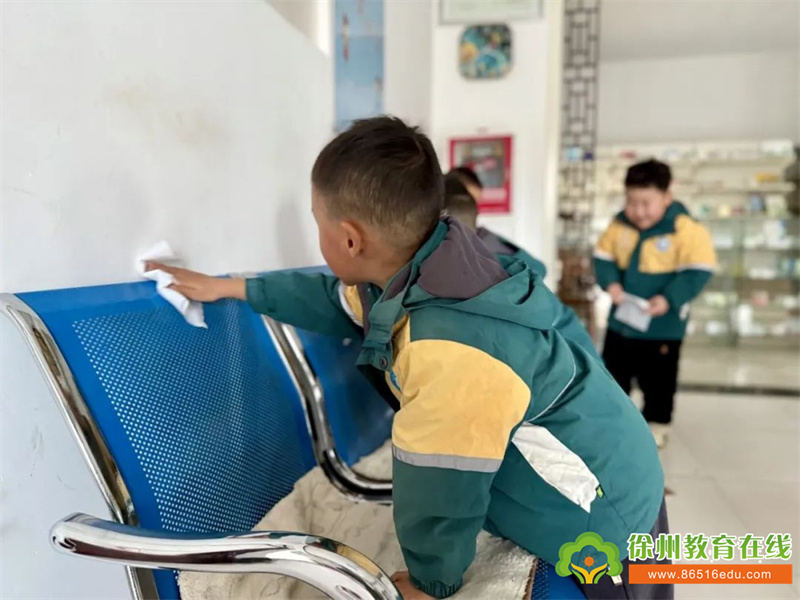 小朋友们主动帮老师整理教室,用小手整理玩具,帮助小朋友。随后孩子们来的社区、卫生室扫地、擦桌子……小小的身体,大大的能量。