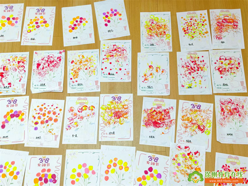 美好的节日应该有惊喜的小礼物伴随,你们看,孩子们用灵巧的小手,在老师的指导下用心制作祝福贺卡、花束、等手工作品呢,他们想通过自己的小巧手为身边的女性长辈送上最纯真最美好的祝福。