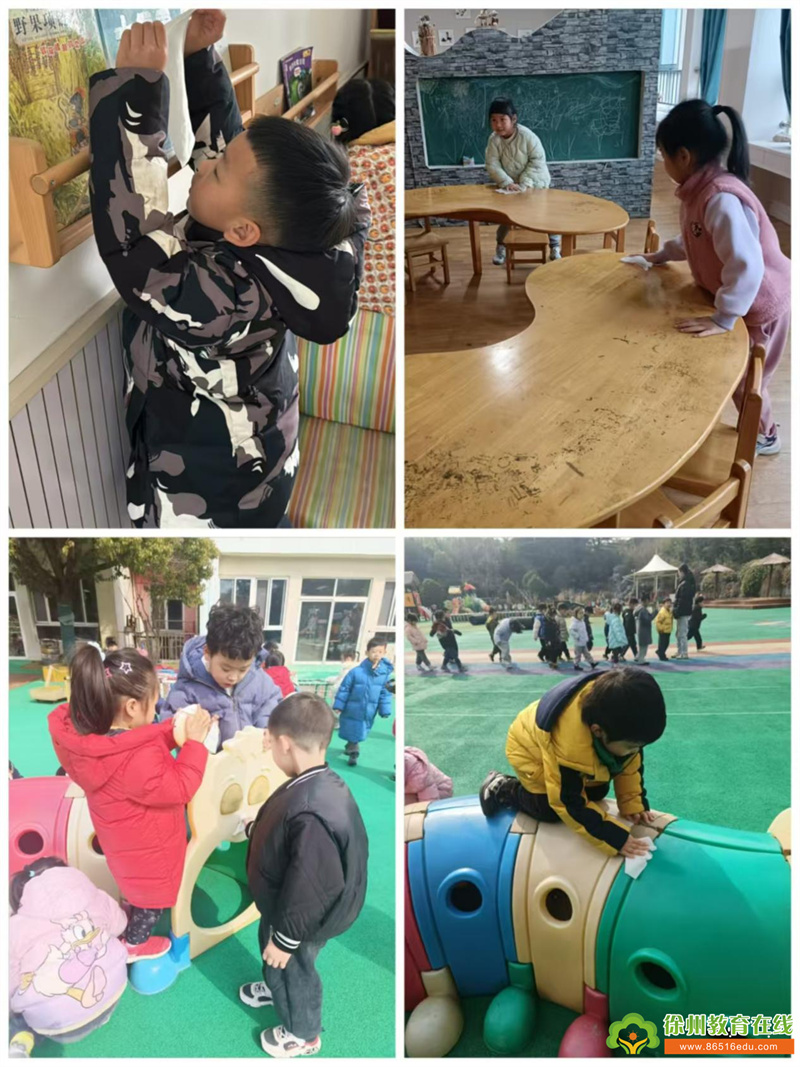 3月5日学雷锋纪念日当天,全体幼儿热情高涨,积极行动起来!大班的哥哥姐姐带着小、托班的弟弟妹妹们一起做游戏,他们耐心细致地讲解游戏规则,还贴心地帮弟弟妹妹们整理衣物、照顾他们的情绪。在哥哥姐姐的助下,弟弟妹妹们玩得格外投入,脸上洋溢着灿烂的笑容。中班的幼儿们则撸起袖子,开始了一场热火朝天的大扫除。他们拿着清扫工具,认真地将幼儿园的教室、功能室、种植园、户外器械等区域打扫得一尘不染,让整个幼儿园焕然一新。瞧,他们干得多带劲啊,一个个都是勤劳的小能手!