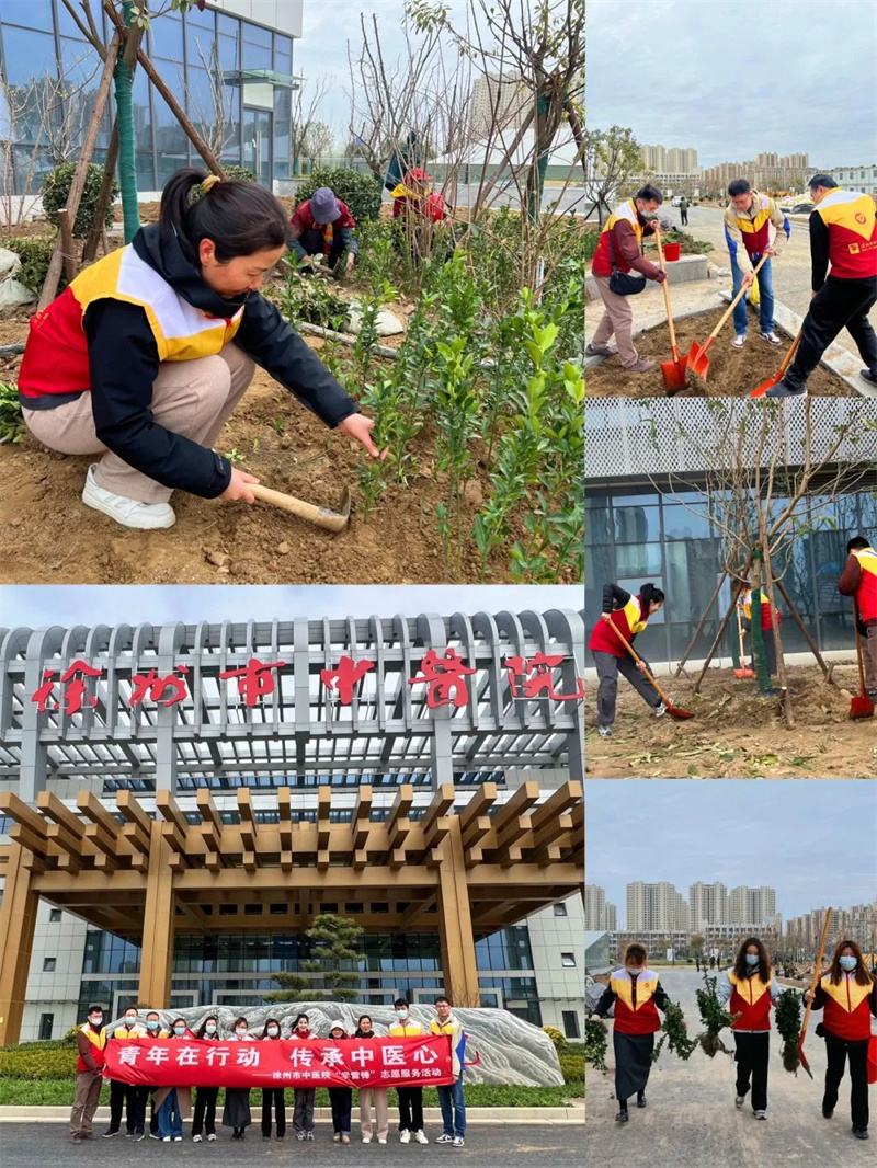 3月12日植树节当天,徐州市中医院团委组织28名青年志愿者前往建设中的新院区,开展“杏林春满