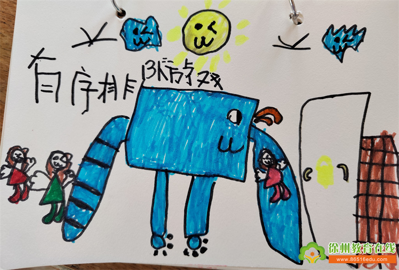 有序排队:用彩色地贴标出等待线,孩子们化身“小火车”,一个接一个耐心等候。