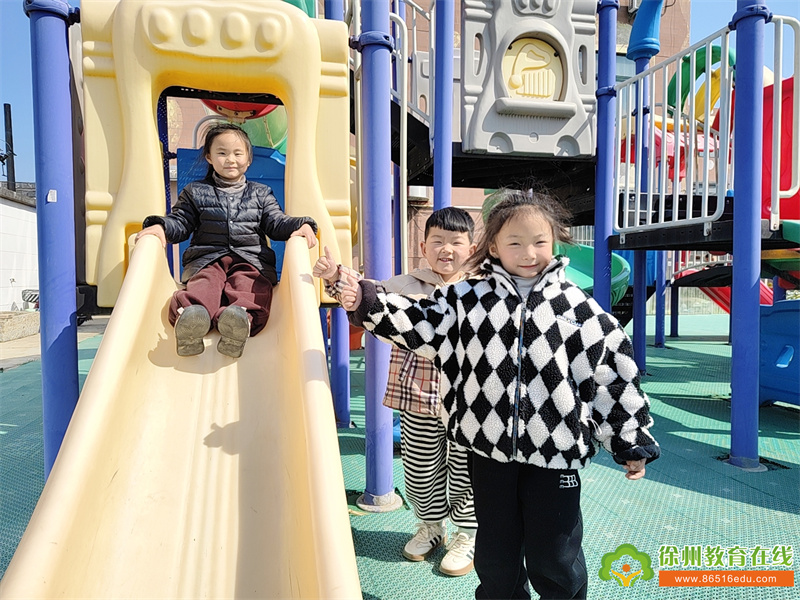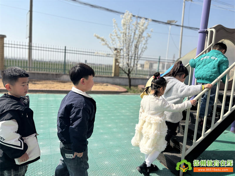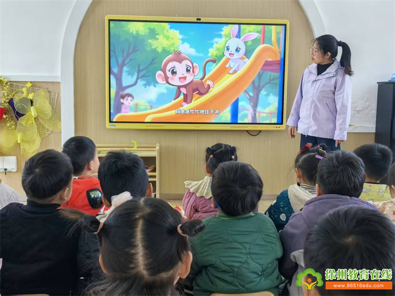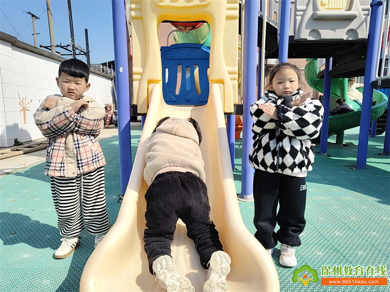 “小手扶好慢慢走,不推不挤排排队;脚朝下滑坐端正,滑下立刻站起来!”老师们将安全规则编成朗朗上口的儿歌,配合轻快的节奏和动作示范,孩子们边唱边学,轻松记住要领。
