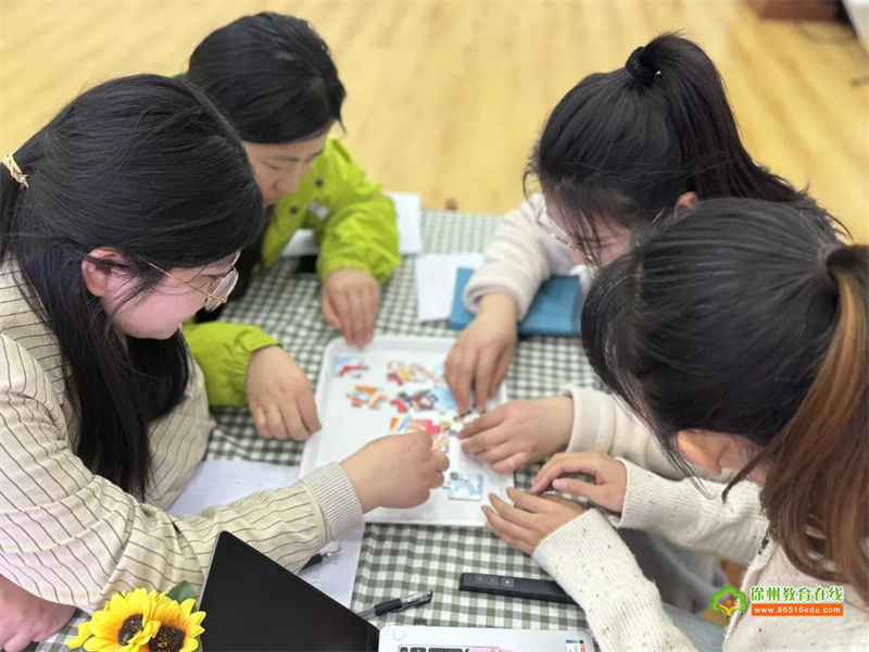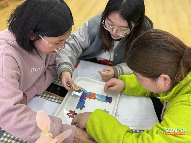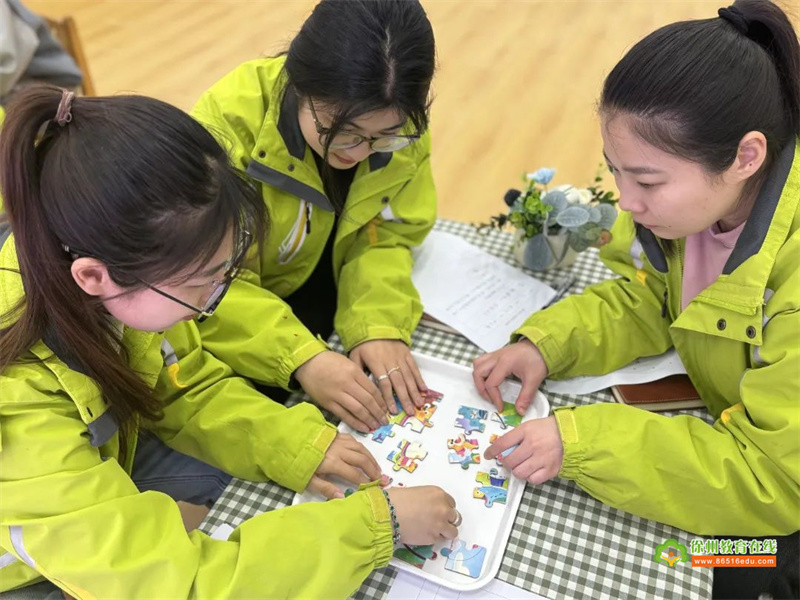在融合游戏体验的过程中,老师们共同协作,尽快将拼图完成,同时体会到团队合作的重要性,就像融合教育也需要特殊教育老师以及普通班级老师之间的协作配合。