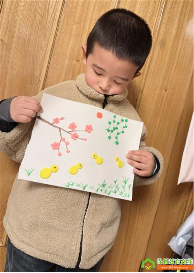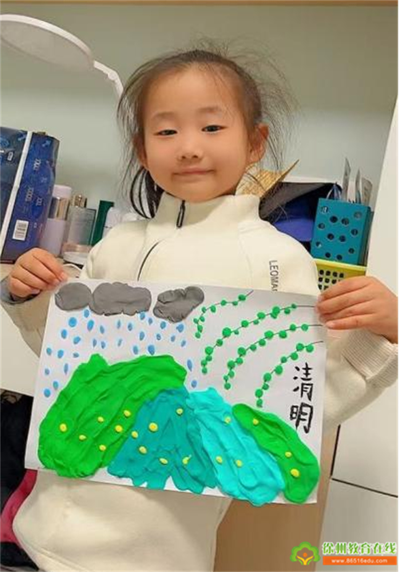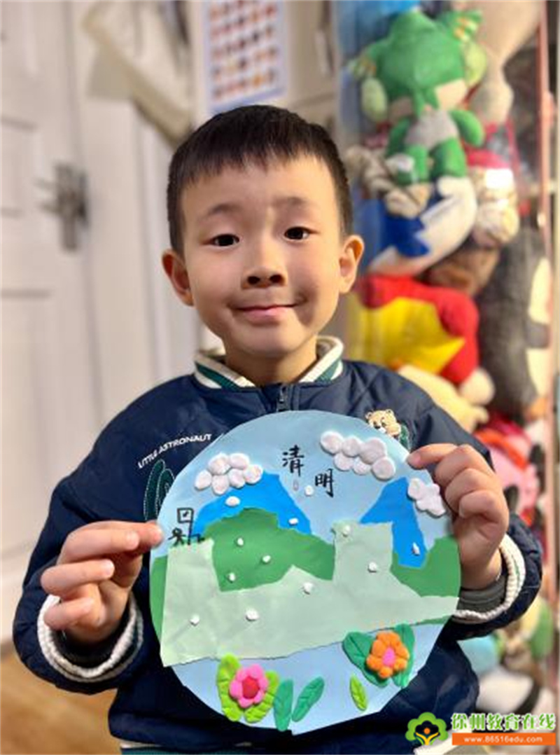 在艺术活动中,孩子们充分发挥想象力,运用黏土、彩纸和画笔等材料,创作了一件件独具匠心的清明主题作品。有的孩子巧手捏出青团和嫩绿的小柳枝,栩栩如生,生动地呈现出清明的食俗文化;有的用彩纸拼贴出色彩斑斓的“春景图”,每一处色彩都抒发着对春天的无限热爱;还有的孩子专注地折出纸花,庄重而肃穆,向英雄先烈致以崇高的敬意,表达内心深切的缅怀之情。