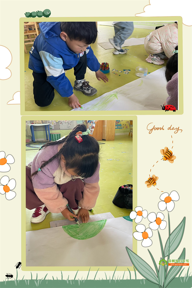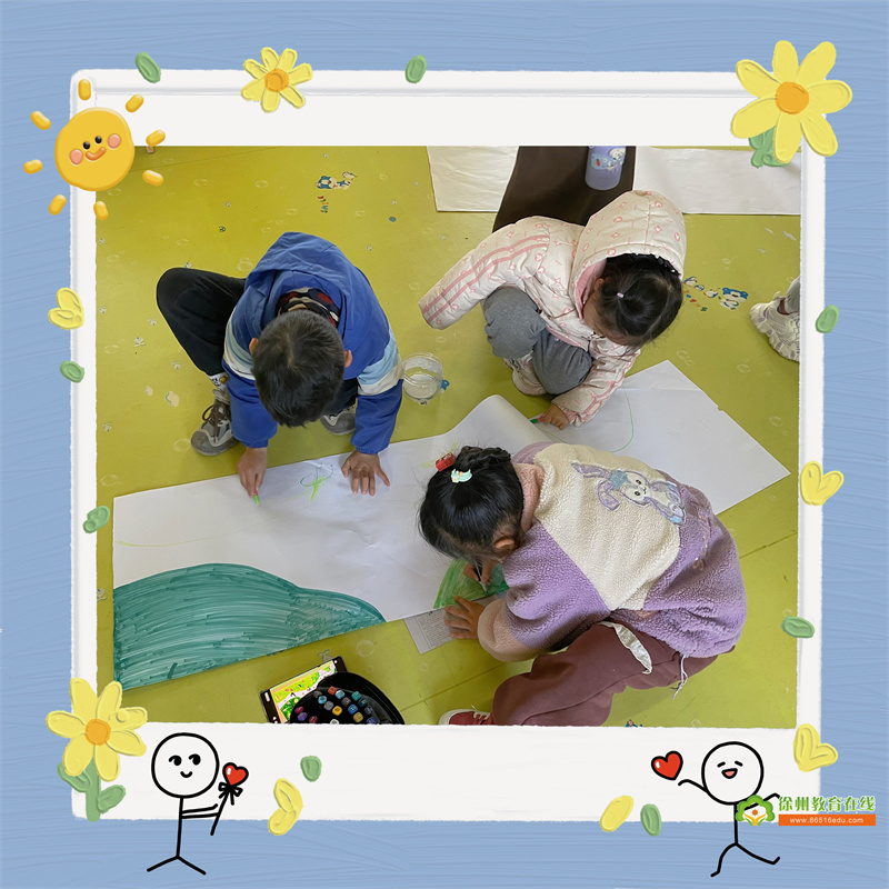 在创作过程中,孩子们积极交流,分享自己对春天的独特感受。他们互相欣赏、互相学习,思维的火花在碰撞中绽放。有的孩子会因为同伴的创意而受到启发,为自己的作品添上独特的一笔。