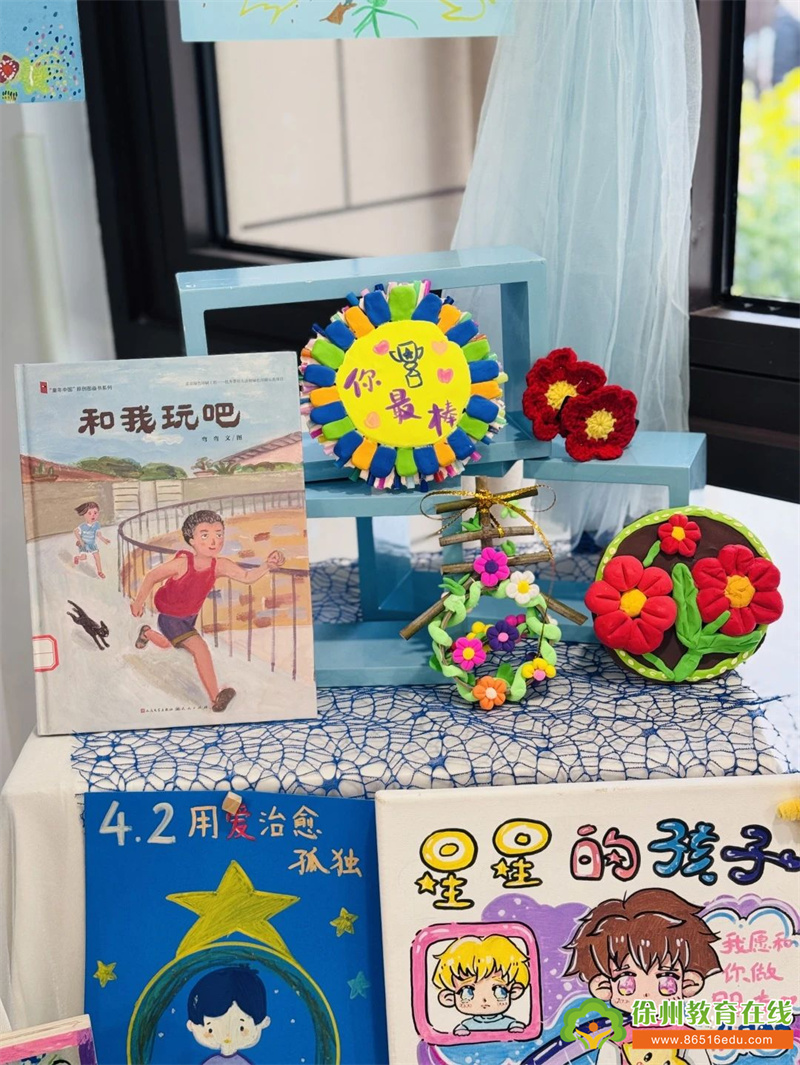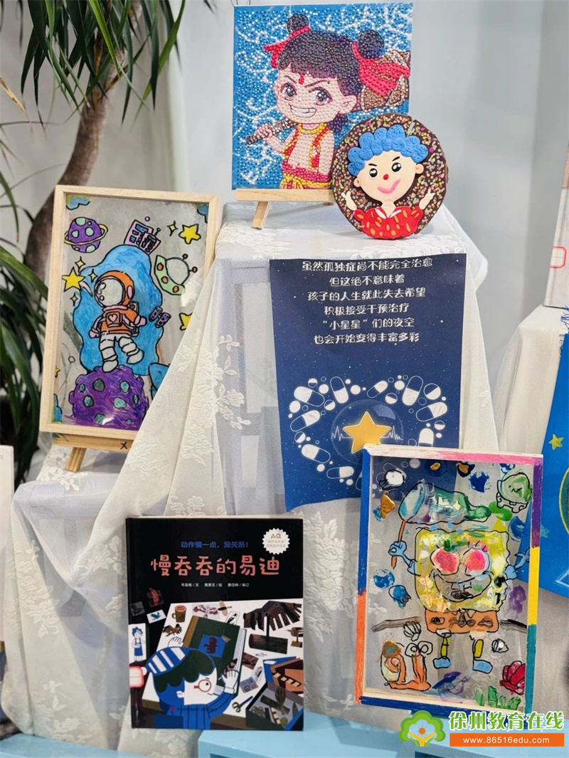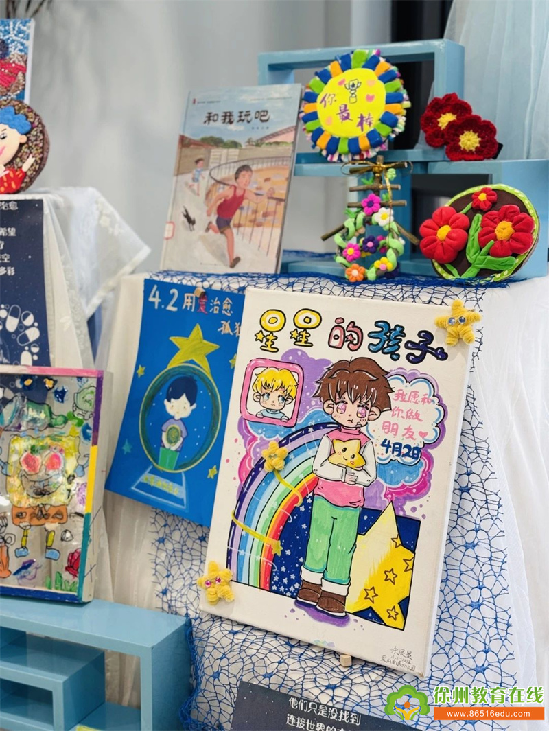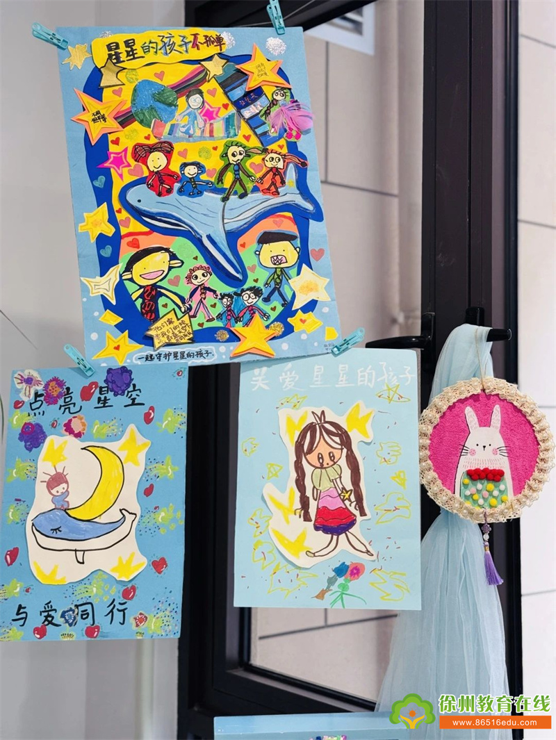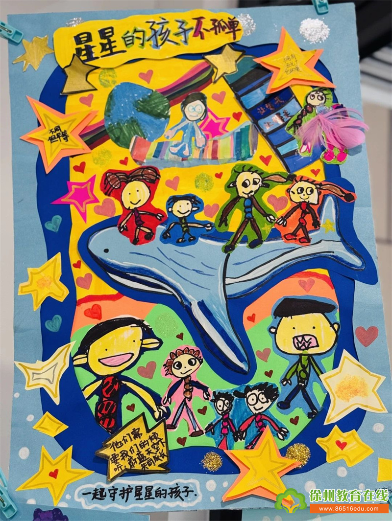 孩子们以亲子创作、师幼共创等形式完成"我们都是一颗星"主题画报。走进商店、行于街头,在云龙湖畔、美术馆前,向过路的行人呈现画作,积极宣传,成为流动的关爱课堂。
