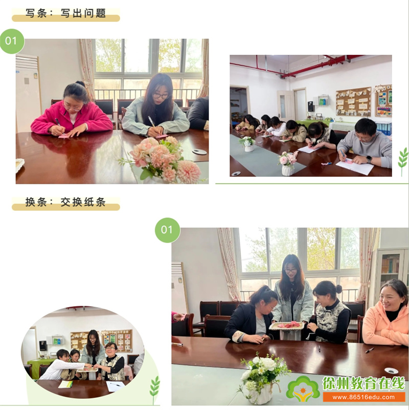 教师们在写条、换条、亮条、解条及展条的过程中交流各自想法与观点,提供建议与策略,在轻松愉悦的氛围中每位教师都积极思考,敢于表达。