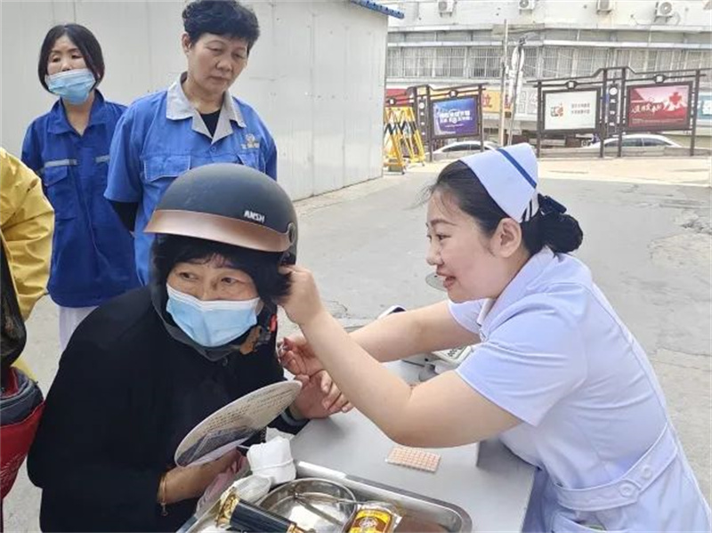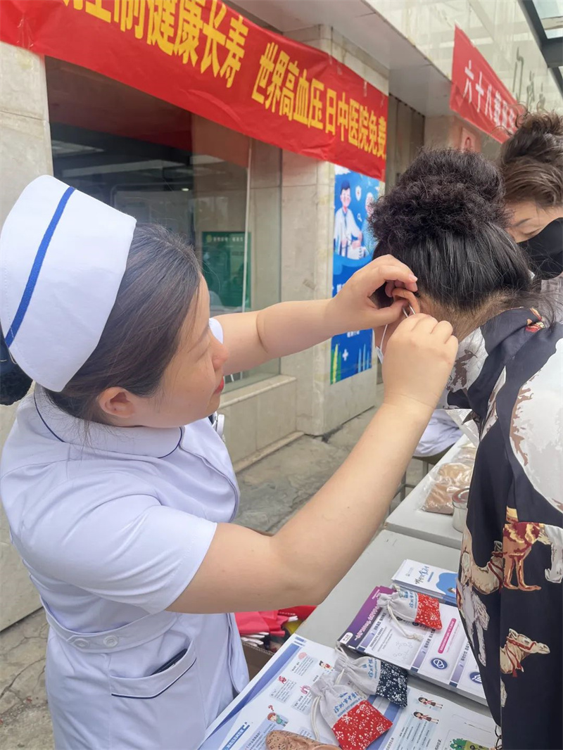医护诊疗团队一边操作,一边讲解中医调理血压的原理,让大家感受到传统医学“简、便、验、廉”的独特魅力 。