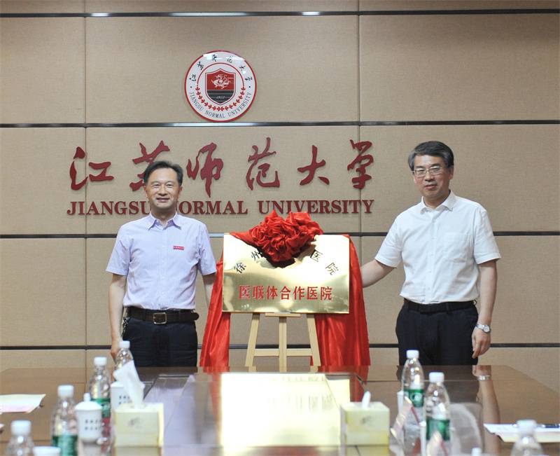 签约仪式后,牛勇院长与张其飞副校长共同为“徐州市中医院—江苏师范大学医院医联体”揭牌,仪式圆满结束。