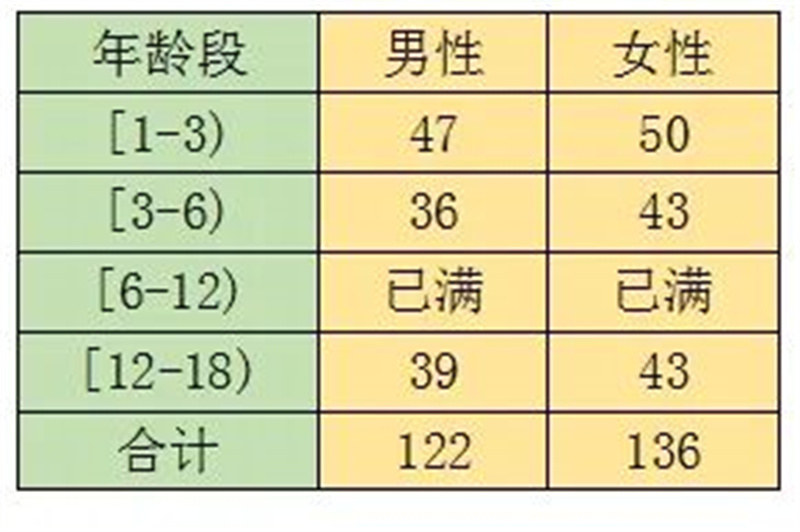 1. 小于18(不含)岁的婴幼儿、学龄前及学龄儿童、青少年,各龄组招募人数见下表: