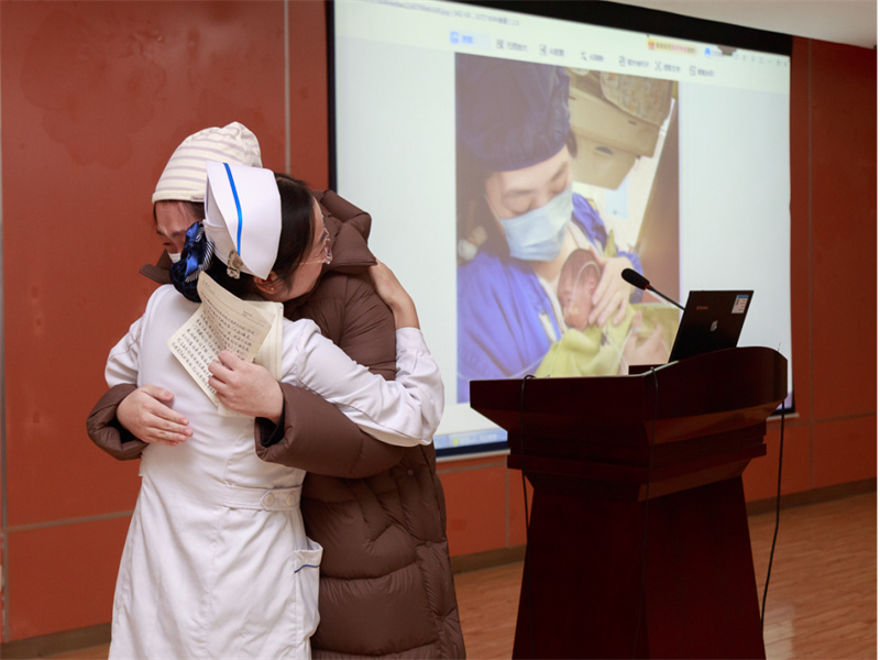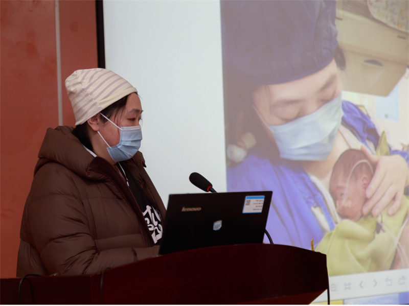 活动现场邀请了两位早产儿家长进行了分享交流,一位是在院的出生孕周28周的宝妈,她讲述了作为一名早产家长的心路历程,过程几度哽咽惹得在座的家长及医务人员也潸然泪下。她说面对宝宝的提前到来感到非常的惊慌失措、自责无助,在NICU全体医护人员的共同努力下宝宝病情趋于稳定后进行了“袋鼠式护理”,看到小小的人儿伏在她的胸前,心率和血氧饱和度变得比任何时候都要平稳。现在的她无比的坚定信心,相信在医护和家长的共同努力下宝宝会越来越好。
