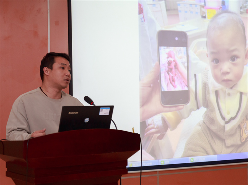 另外一位分享的宝爸,宝宝已经一岁多了,看着活泼健康的小朋友你很难想象他的出生孕周只有27+1周,出生体重仅仅580克,台上的宝爸讲述着他们一路的艰辛历程,但更让人钦佩的是他们能够坚定不移的相信宝宝、信任医务人员,谨遵医嘱、按时随访,看着他们的成功案例更是给现场还在焦虑中的家长一剂最有效的强心针,早产宝宝们在医护和家长的呵护下,一样可以茁壮成长!