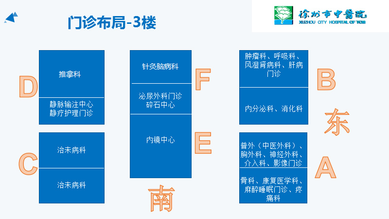 门诊时间调整 为更好地满足患者就诊需求,优化患者就医体验,徐州市中医院调整了门诊工作时间(试行),具体安排如下: 上午:8:30-12:00 下午:13:00-16:30 试行时间:2025年9月1日—12月31日。 温馨提醒 急诊24小时接诊 方便门诊地址:门诊楼二楼C区名医堂对面 门诊平面布局图