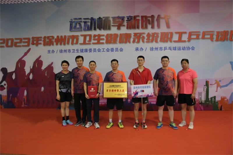 为贯彻落实党的二十大关于体育强国、全?健身的工作部署,进一步推动职工文体活动的开展,丰富职工的业余文化生活,院工会近期组织职工参加在市工业职业技术学院体育馆举办的2023年度徐州市卫生健康委工会“运动畅享新时代”职工乒乓球比赛。徐州市妇幼保健院代表队与来自卫生系统13家代表队,76名队员同台竞技奋勇拼搏,经过队员们两天的紧张激烈的角逐,徐州市妇幼保健院代表队最终取得了男子团体第三名,男子单打第二名的好成绩,收获了历史最好成绩,为医院争得了荣誉。