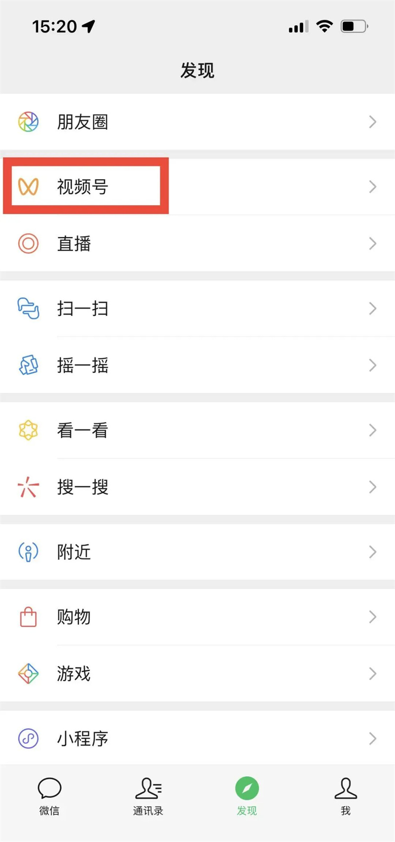 打开微信,点击发现