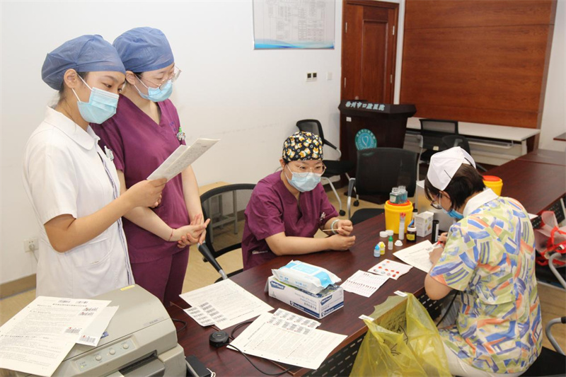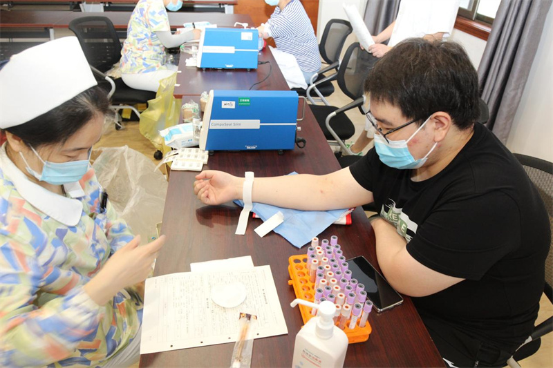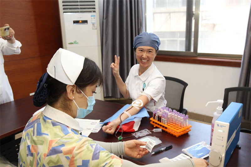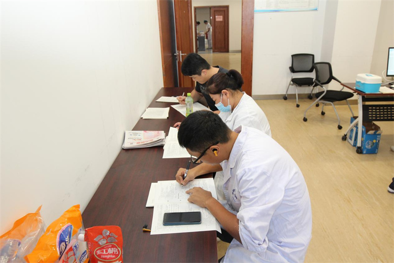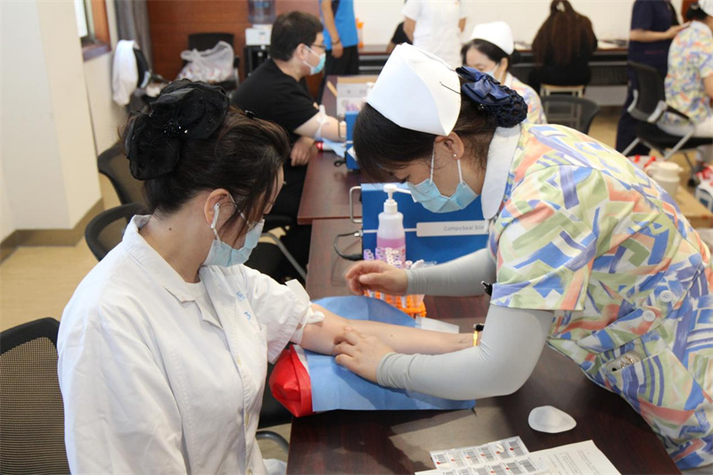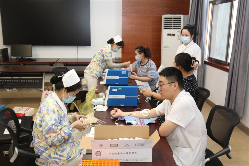 上午8点30分,无偿献血活动在医院6号楼远程会诊中心正式开始,尽管天气炎热,依然没有阻挡大家献血的热情。在工作人员的引导下,献血者有序排队进行信息登记、血型化验、无偿献血。献血队伍中,既有老面孔,也有新成员,有的已经献血很多次,他们献出了热血,以挽救不可重来的生命。大家纷纷表示,作为医务工作者最能感受到血液的珍贵和紧缺,希望用实际行动为临床医疗用血贡献一份爱心和力量。