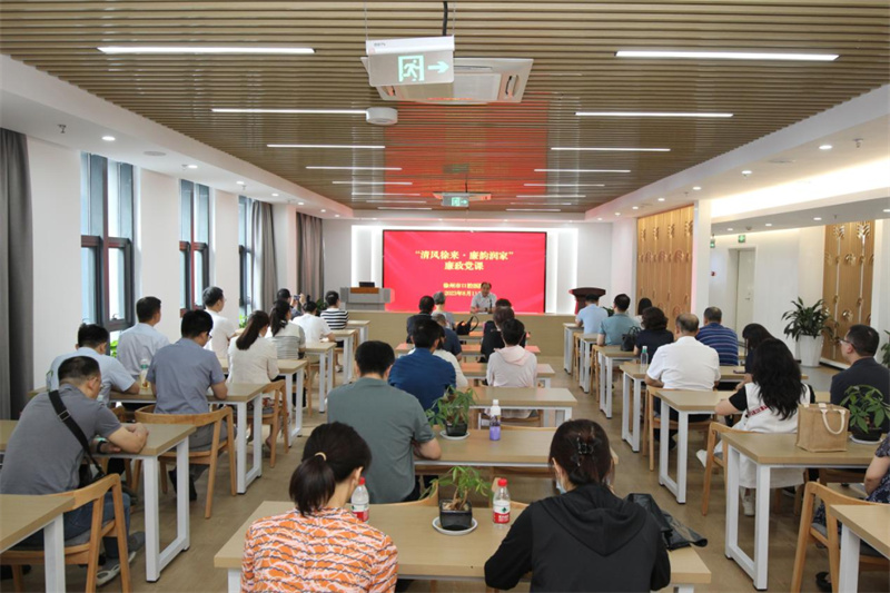 随后,党委书记王鹏来作以家风为主题的专题廉政党课。他从把握家风建设时代意义、常思家风失范现实危害、激发廉洁建设家庭力量三个方面,阐述了以纯正家风涵养清朗党风政风社风的重要性,要求我们每一位党员干部能够切实提高政治站位,重视家庭家教家风建设,做到廉洁从政、廉洁齐家,筑牢思想防线,严格要求家属和身边人员,增强规矩意识,时刻紧绷廉洁自律这根弦,干干净净做人,踏踏实实做事。课前大家一起观看了警示教育片《家风之殇—远离家庭腐败》。