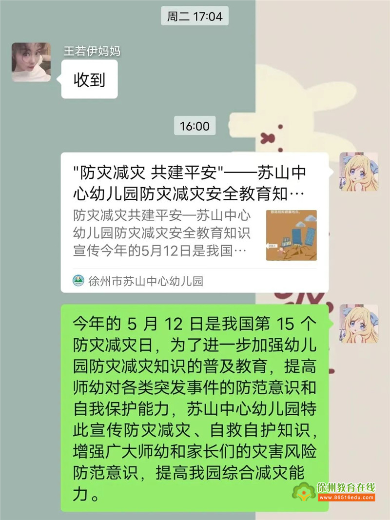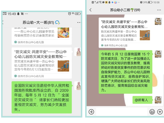 通过班级群对家长进行一次防灾减灾教育宣传。