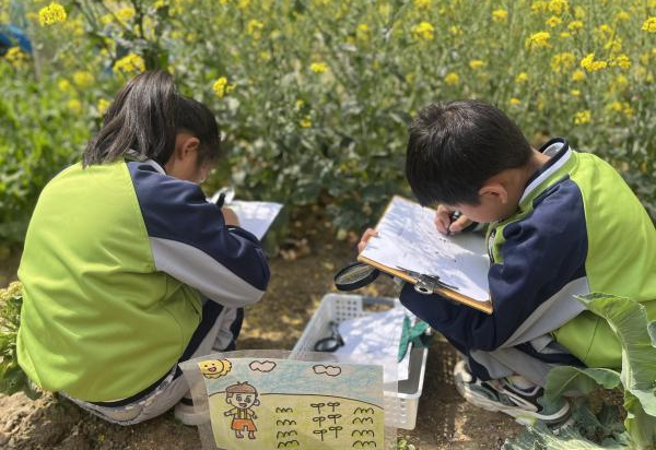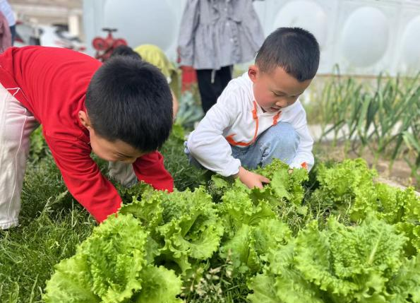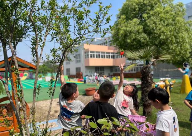 幼儿玩沙、玩水、玩泥、玩石头,播种、浇灌、采摘、品尝果实,观察测量花草树木变化,与小动物亲密接触,感知节气中的自然密语。