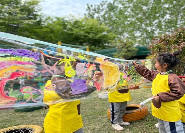 “趣园”里,空中滑索、趣味沙水、小小泥潭、自由画墙,孩子们在与自然的亲密接触中释放天性,享受自主游戏的趣味;“探园”里,孩子们种植、收获、饲养,在劳动中实践探究,体验成功的快乐;“乐园”里大运动器械充足,孩子们尽享运动和挑战的乐趣。
