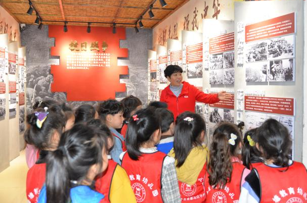 深入挖掘本地红色资源,在秋水湾实践基地内开展主题活动,在园内创设红色主题教育环境,将红色启蒙教育渗透于幼儿一日生活、游戏学习中,在班级创设红色阅读角、走廊创设红色育人环境、邀请家长来园开展“精彩小课堂”……以红色精神浸润童心,用游戏点亮快乐童年。