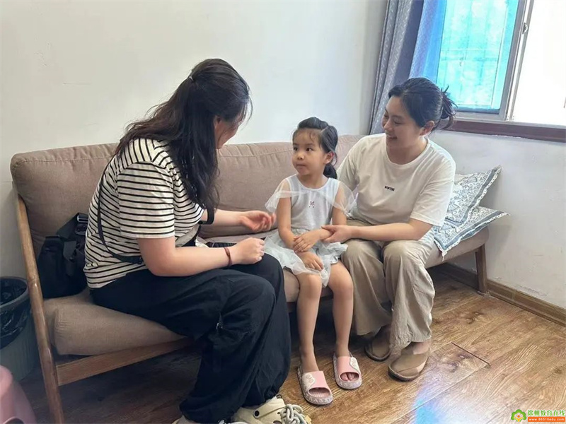 大家访中,两位老师分工明确,与家长亲切交流,细致了解孩子们暑期的生活习惯、教养方式等情况,并做好相关的谈话记录;同时,老师们耐心地解答家长的各种问题,向家长普及防溺水等幼儿安全防范知识。深度的情感沟通,使家园达成了教育共识。