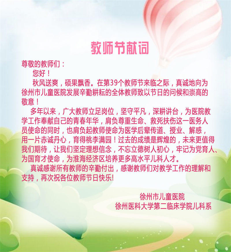 徐州市儿童医院全体临床教师,肩负尊重生命、救死扶伤这一医务人员使命的同时,也肩负起教师使命为医学后辈传道、授业、解惑。徐州市儿童医院积极履行为淮海经济区培养儿科人才的社会责任,通过发挥医院与高校紧密融合的优势,坚持儿童亚专科精细化的特色,医疗与教学同步、理论与技能同步,在教学相长的过程中不断推进医院高质量发展。