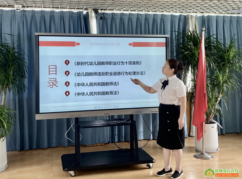 朱献娥主任结合本园实际,带领大家一同学习了《幼儿园教师违反职业道德行为处理办法》、《中华人民共和国教师法》、《中华人民共和国教育法》,重塑教师师德师风,引导全体教师要严于律己,规范言行,发扬教师职业道德,踏实做好各项工作,树立教师的良好形象。