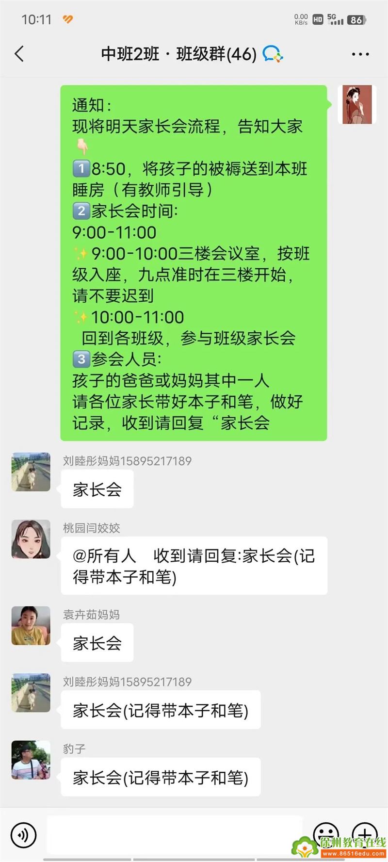 老师们在班级群向家长发出邀请函,便于家长们提前安排好工作,准时参加会议。