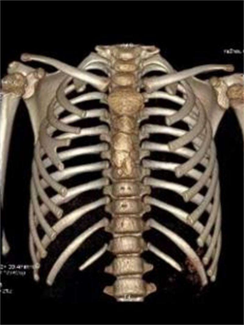 由于肋软骨在X线胸片上不显影,对于肋骨畸形的评价与确诊有局限性,目前多采用胸部 CT加肋骨重建检查。