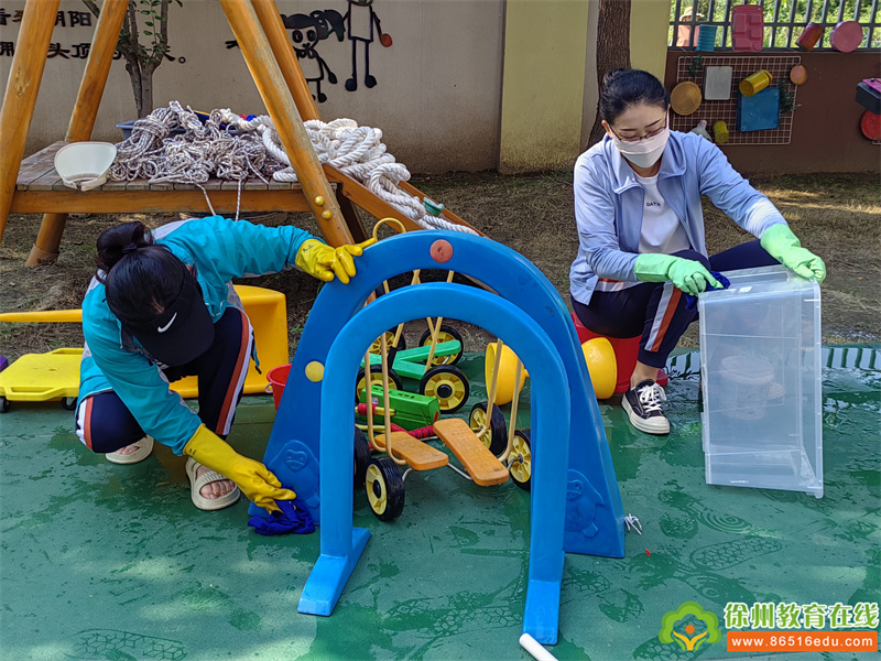 一举一动皆美好,一事一物皆整洁。全体教职工组织有序、分工明确,对幼儿园室内外进行了全方位无死角的大扫除,走廊、桌椅、窗户、地面、盥洗室、厨房、户外大型活动设施设备等一个也不落下,确保给宝贝们一个健康、舒适、整洁的生活环境。